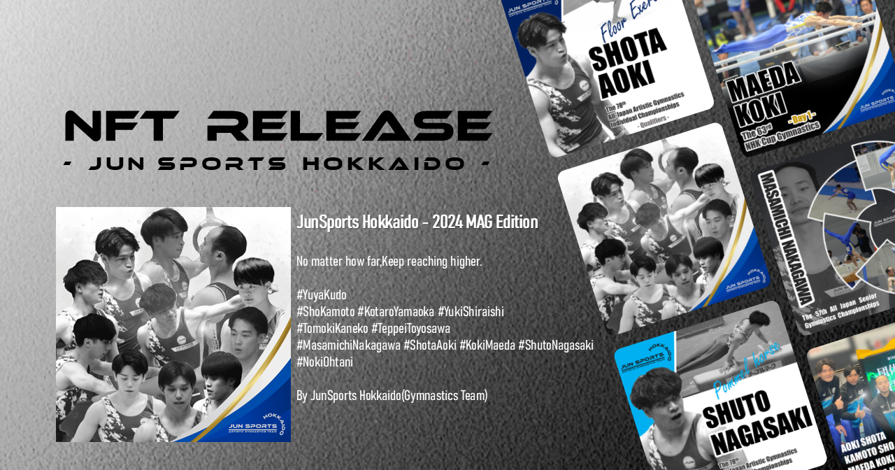 NFT(ノンファンジブルトークン)は、唯一無二のデジタル資産です。発行されたNFTはブロックチェーン技術により、その所有権や取引履歴が管理されるため、世界中で唯一の存在として所有することができます。ジュンスポーツ北海道のNFTは、体操競技に関連する画像やデザインを選んで発行できるデジタルアイテムで、今後は特別なコンテンツやイベント参加時の特典などにも活用する予定です。