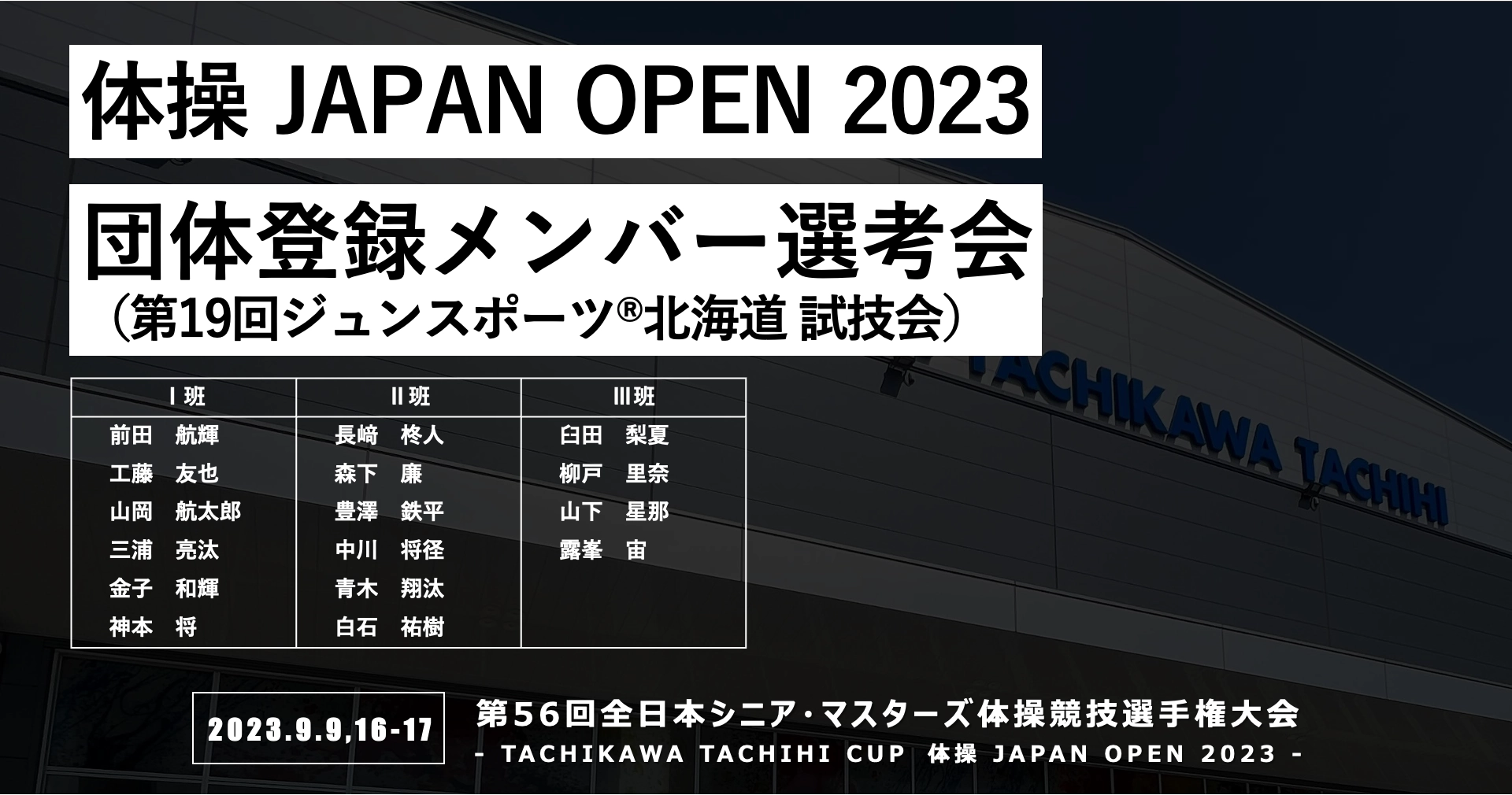 ■第56回全日本シニア体操競技選手権大会今年は、9月9日(土)に東京都立川市(アリーナ立川立飛)で開催。