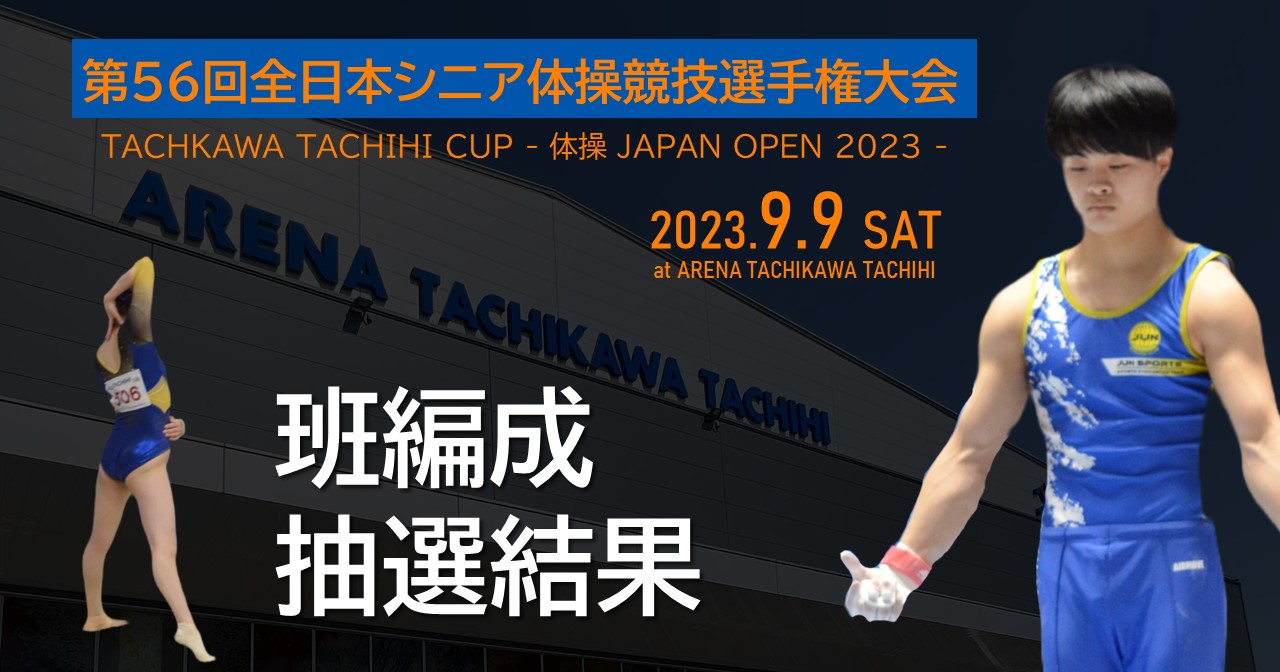 http://www.jsgcf.jp/2023/07/03/2023-%e7%ac%ac56%e5%9b%9e%e3%80%80%e5%85%a8%e6%97%a5%e6%9c%ac%e3%82%b7%e3%83%8b%e3%82%a2%e4%bd%93%e6%93%8d%e7%ab%b6%e6%8a%80%e9%81%b8%e6%89%8b%e6%a8%a9%e5%a4%a7%e4%bc%9a%e3%80%80%e7%8f%ad%e7%b7%a8/■全日本シニア体操競技選手権大会(TACHKAWA TACHIHI CUP - 体操 JAPAN OPEN 2023 -)