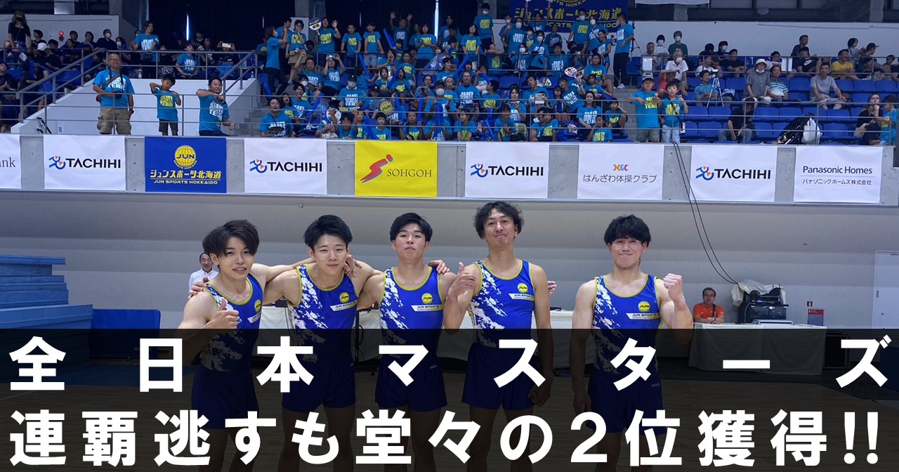 第56回全日本マスターズ体操競技選手権が、東京都立川市のアリーナ立川立飛で16日から17日の日程で開催されました。ジュンスポーツ北海道は大会2日目に登場し、ジュンスポーツ神奈川の約100名の大応援団の声援を受け、団体総合で二連覇を目指しましたが、惜しくも優勝には届かず2位となりました。
