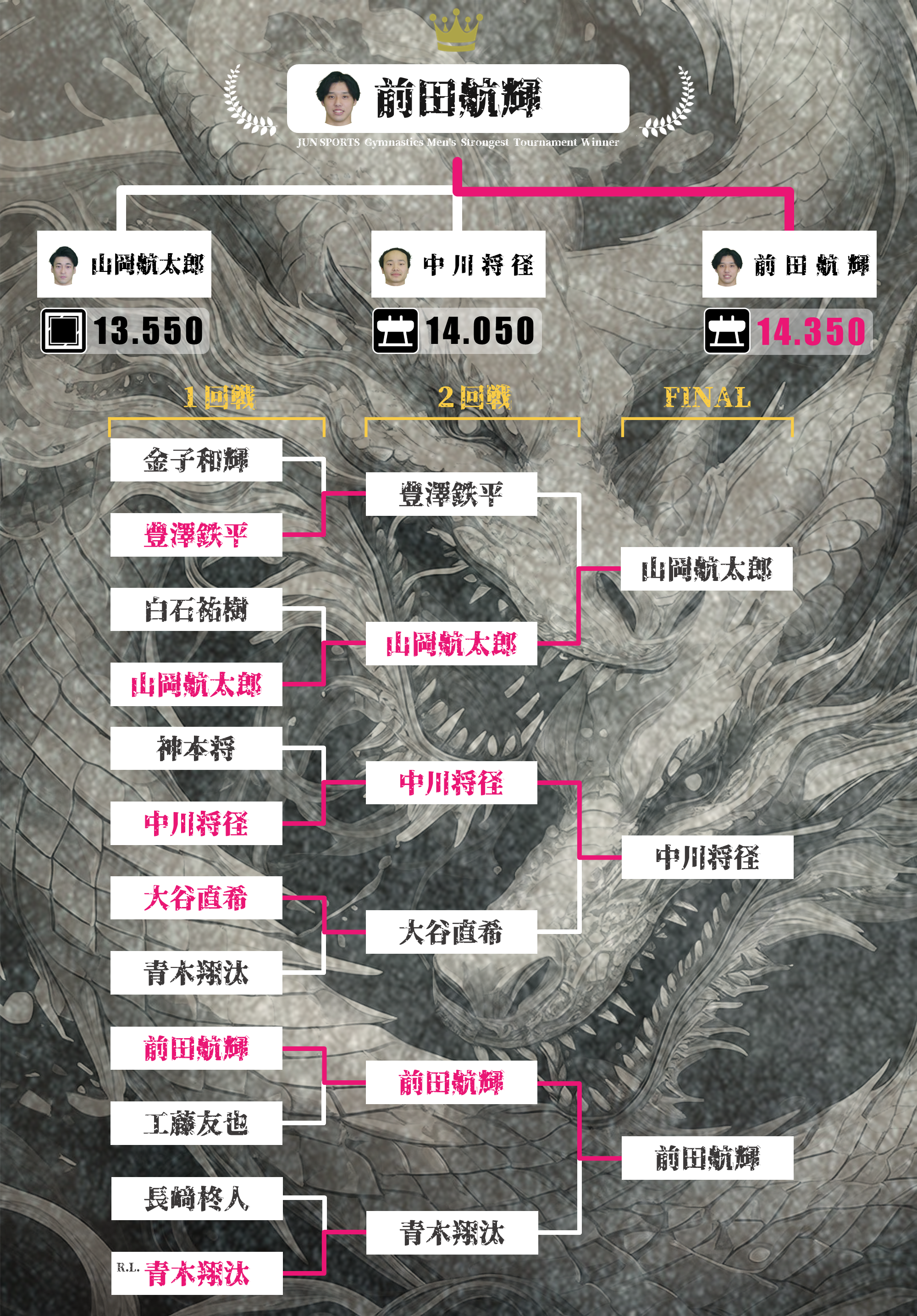 キャンペーン結果①決勝進出者: 山岡、中川、前田
