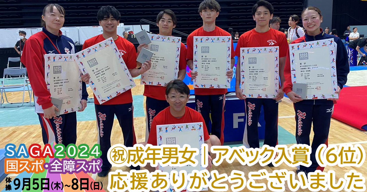 2024年9月5日(木)から8日(日)まで、佐賀県で開催された国民スポーツ大会(SAGA2024 国スポ)の体操競技において、ジュンスポーツ北海道から出場した選手たちが全力で競技に臨みました。